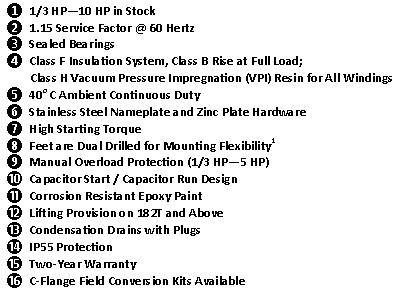 Single Phase, 56C—215T Frame